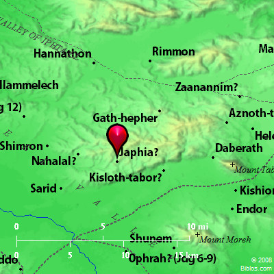 ja-fi'-a, jaf'-i-a (yaphia`): A town on the southern boundary of Zebulun named with Chisloth-tabor and Daberath (Joshua 19:12). It is represented by the modern Yafa, about 1 1/2 miles Southwest of Nazareth, near the foot of the hills. It was one of the places fortified by Josephus (Vita, 45; BJ, II, xx, 6).