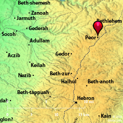 Atlas ![]() Peor and surrounding area Maps Created using Biblemapper 3.0 Additional data from OpenBible.info You are free to use up to 50 Biblos coprighted maps (small or large) for your website or presentation. Please credit Biblos.com. Occurrences Numbers 23:28 Balak took Balaam to the top of Peor, that looks down on the desert.Numbers 24:8 God brings him out of Egypt. He has as it were the strength of the wild ox. He shall eat up the nations his adversaries, shall break their bones in pieces, and pierce them with his arrows. Numbers 24:17 I see him, but not now. I see him, but not near. A star will come out of Jacob. A scepter will rise out of Israel, and shall strike through the corners of Moab, and break down all the sons of Sheth. Numbers 24:18 Edom shall be a possession. Seir, his enemies, also shall be a possession, while Israel does valiantly. Numbers 24:20 He looked at Amalek, and took up his parable, and said, "Amalek was the first of the nations, But his latter end shall come to destruction." Numbers 24:22 Nevertheless Kain shall be wasted, until Asshur carries you away captive." Numbers 24:24 But ships shall come from the coast of Kittim. They shall afflict Asshur, and shall afflict Eber. He also shall come to destruction." Numbers 25:3 Israel joined himself to Baal Peor: and the anger of Yahweh was kindled against Israel. Numbers 25:5 Moses said to the judges of Israel, "Everyone kill his men who have joined themselves to Baal Peor." Numbers 25:15 The name of the Midianite woman who was slain was Cozbi, the daughter of Zur; he was head of the people of a fathers' house in Midian. Numbers 25:18 for they harassed you with their wiles, with which they have deceived you in the matter of Peor, and in the matter of Cozbi, the daughter of the prince of Midian, their sister, who was slain on the day of the plague in the matter of Peor." Numbers 31:16 Behold, these caused the children of Israel, through the counsel of Balaam, to commit trespass against Yahweh in the matter of Peor, and so the plague was among the congregation of Yahweh. Deuteronomy 4:3 Your eyes have seen what Yahweh did because of Baal Peor; for all the men who followed Baal Peor, Yahweh your God has destroyed them from the midst of you. Joshua 22:17 Is the iniquity of Peor too little for us, from which we have not cleansed ourselves to this day, although there came a plague on the congregation of Yahweh, Encyclopedia PEORpe'-or (ha-pe`or; Phogor): PE'OR, supposed to be upon Pisgah; the name is found only in Numb. 23:28. Strong's Hebrew H6465: Peora mountain in Moab, also a god worshiped there |